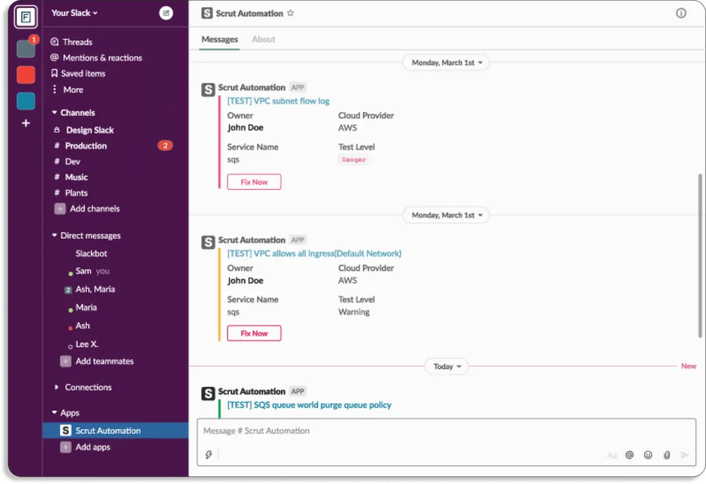 - Enables security and development teams to fix cloud security issues faster by directly taking actions on the Slack, Jira, and Teams platforms.