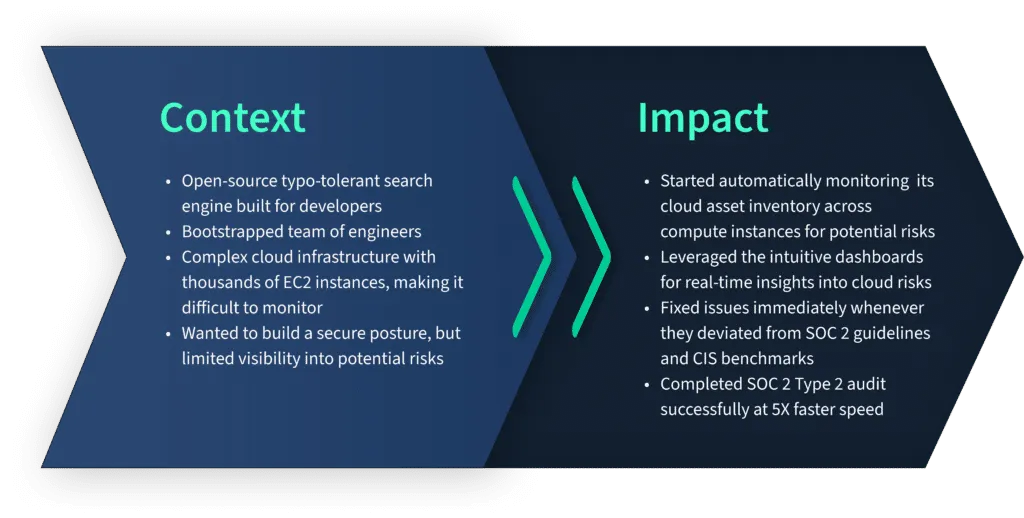Typesense (now our customer) reached out to us with the goal of getting SOC 2 Type 2 compliant. Before going for the audit, they required a secure cloud posture but needed more visibility into their cloud risks.