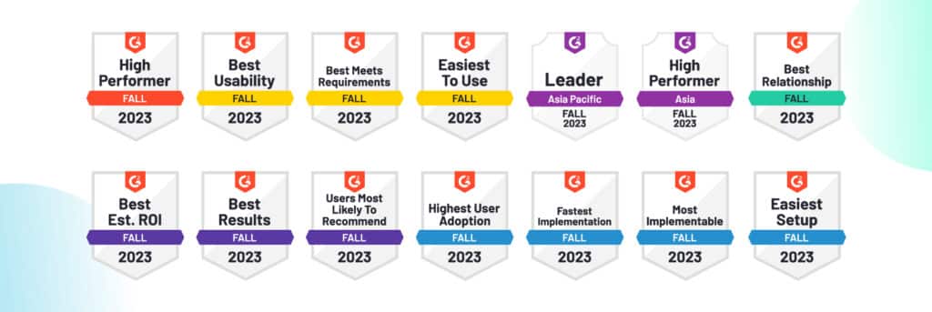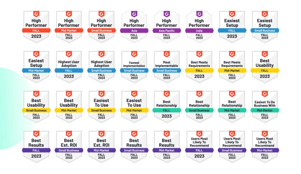 Here is a run-through of all the badges we were awarded in G2’s Fall 2023 Report.