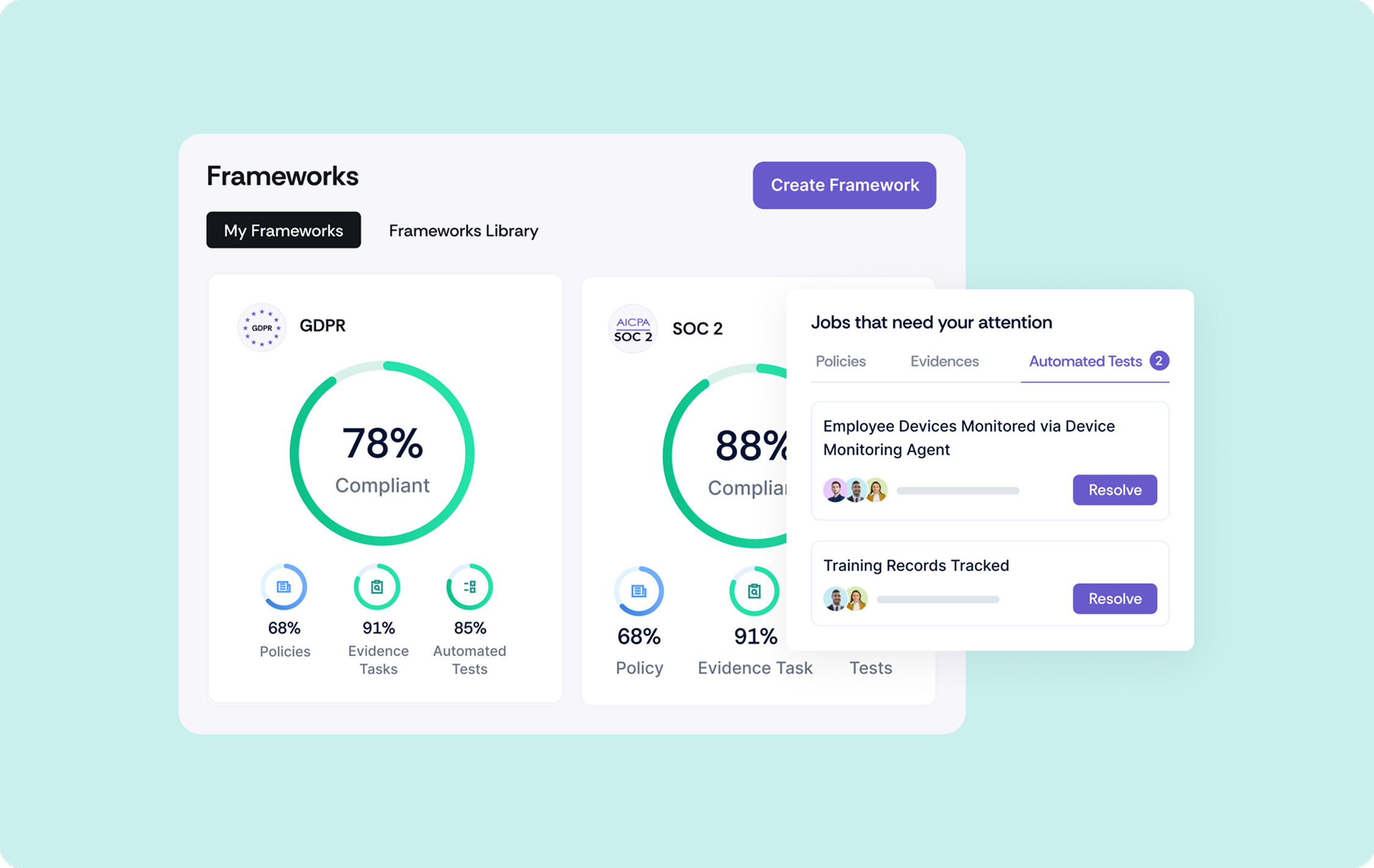 - Running multiple frameworks with no dedicated resources: Pluto Security needed SOC 2 and ISO 27001 in place to enter enterprise markets, with GDPR and HIPAA already on the horizon as the business expanded into new geographies and customer segments. Managing that growing scope as a single operator, without a process or platform to keep things organized, would have turned compliance into a full-time job on top of everything else.
