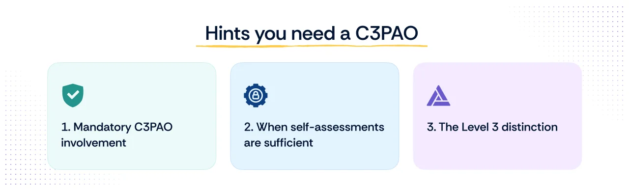 Determining when to engage a C3PAO is a direct function of your CMMC compliance requirements and the sensitivity of the information you handle as a defense contractor within the DIB. The need for a C3PAO is directly tied to the level of certification required by your DoD contract.