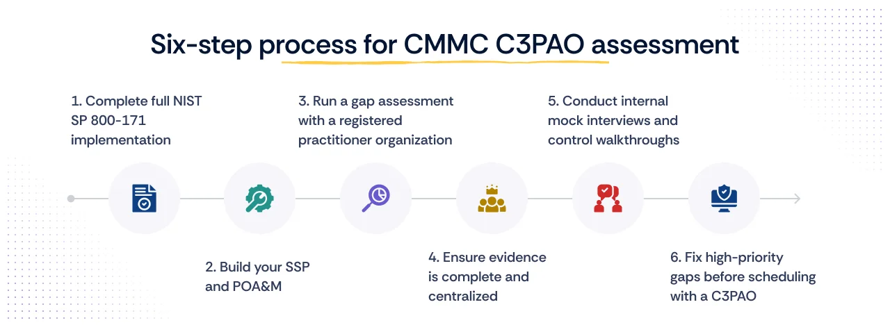 Assurance extends beyond documentation. C3PAO assessors will interview staff and observe security processes firsthand. You must conduct internal mock interviews and control walkthroughs to ensure employees can articulate their roles and processes correctly, providing consistent narratives for the assessment team.