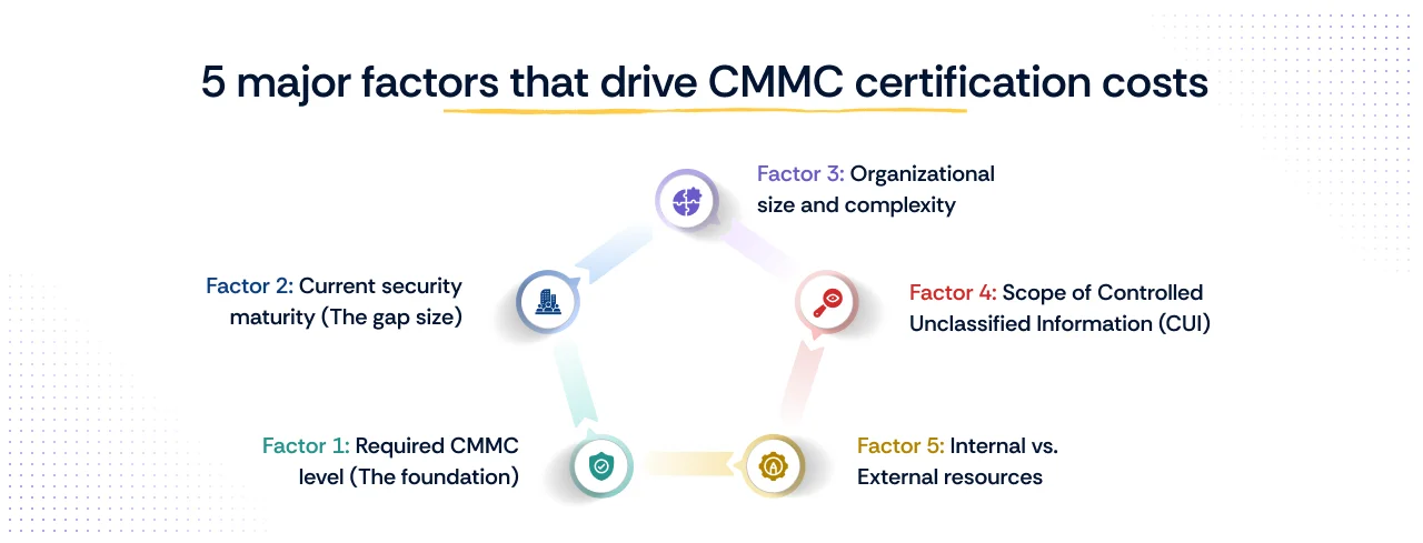 The biggest factor is the scope of Controlled Unclassified Information (CUI). If CUI is not isolated, the entire company network falls into the certification scope, dramatically increasing technology, labor, and audit costs.