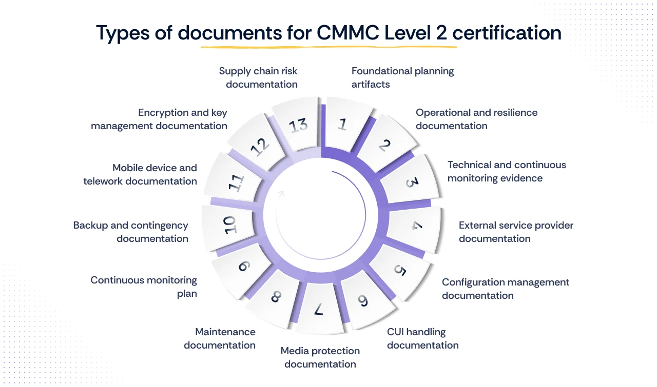 CMMC documentation includes the mandatory artifacts, policies, procedures, and evidence logs required by the DoD to prove a contractor's security practices are mature, repeatable, and effective at protecting FCI and CUI.
