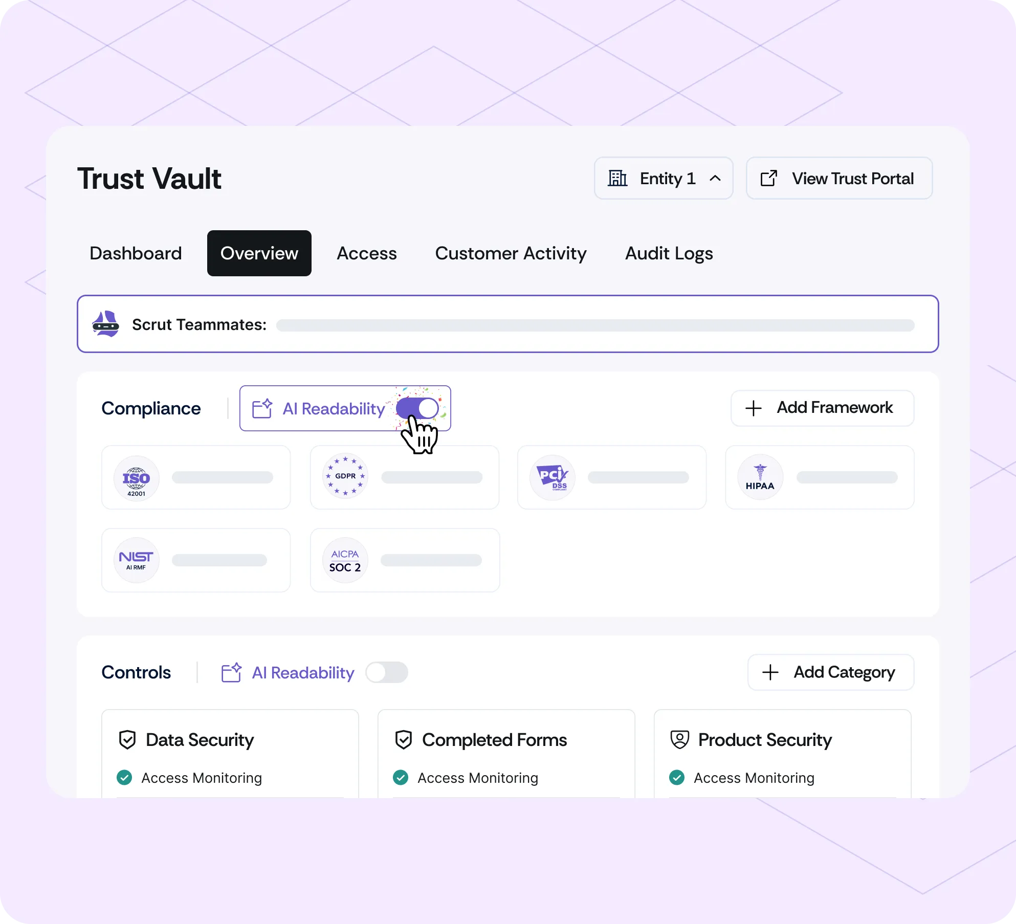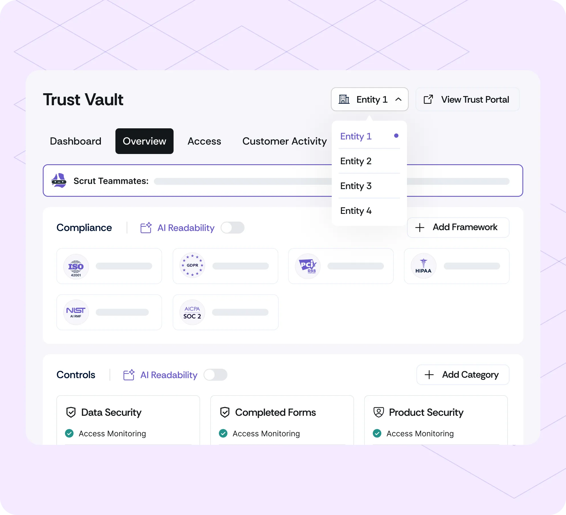 With Scrut, it’s simple: just head to the trust page and everything you need is right there. Doesn’t get easier than that.