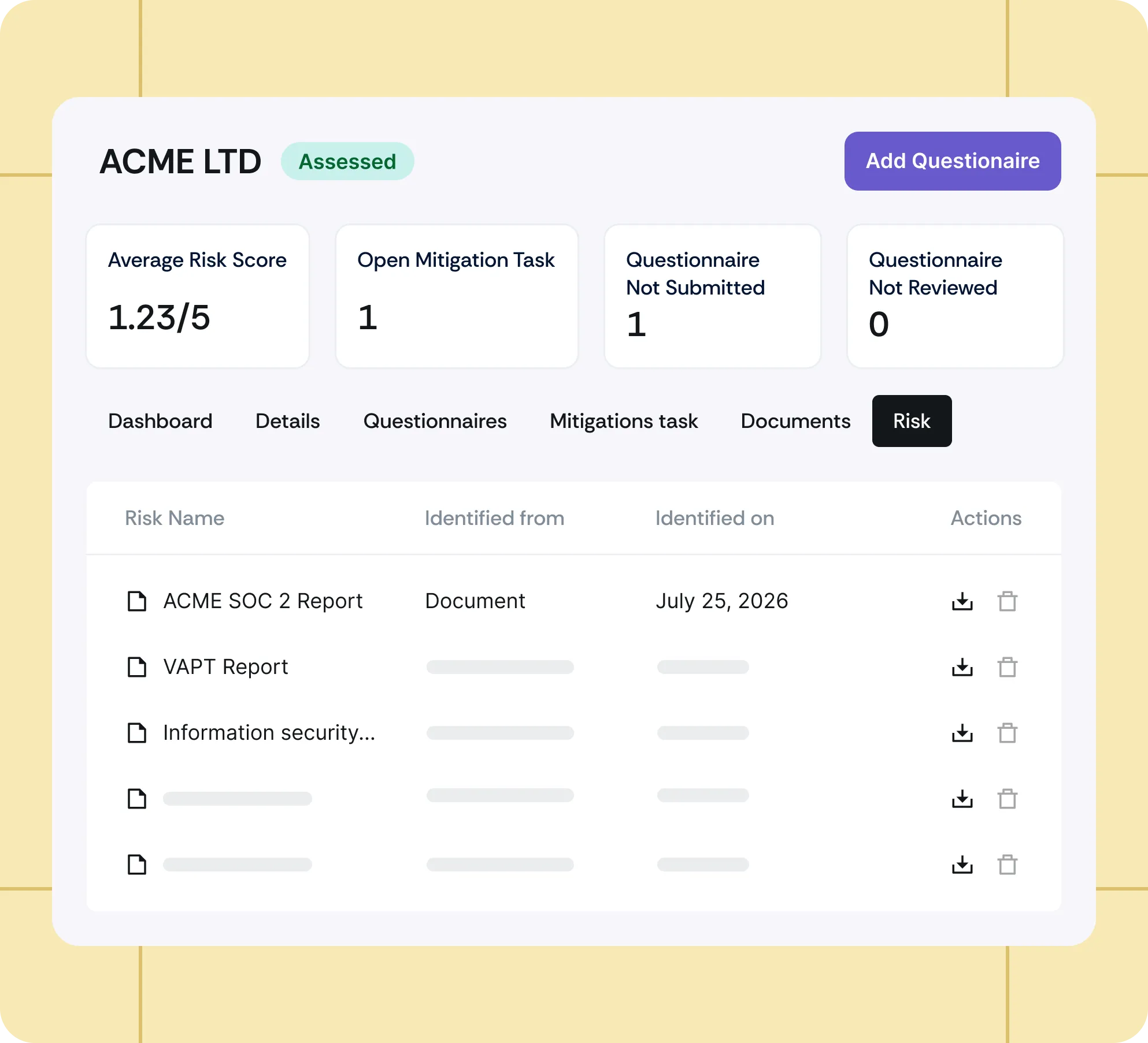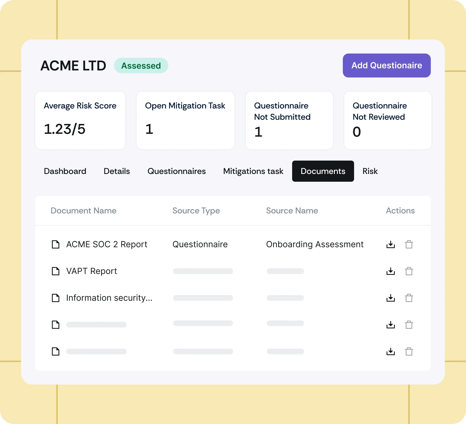 Gain real-time visibility into vendor risks and prioritize high-risk vendors. Generate reports to communicate progress to stakeholders.
