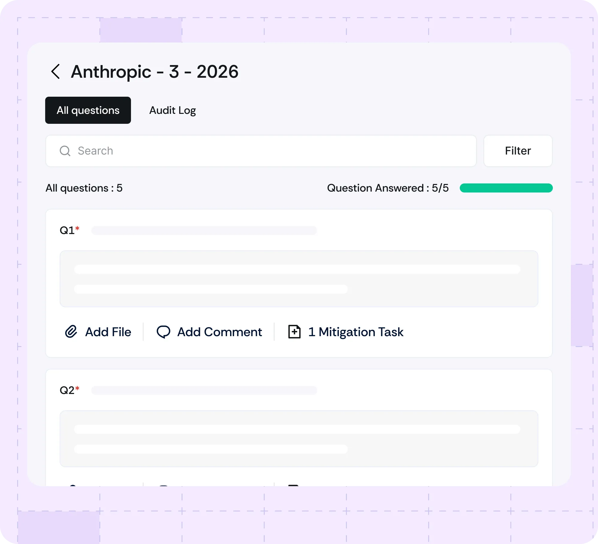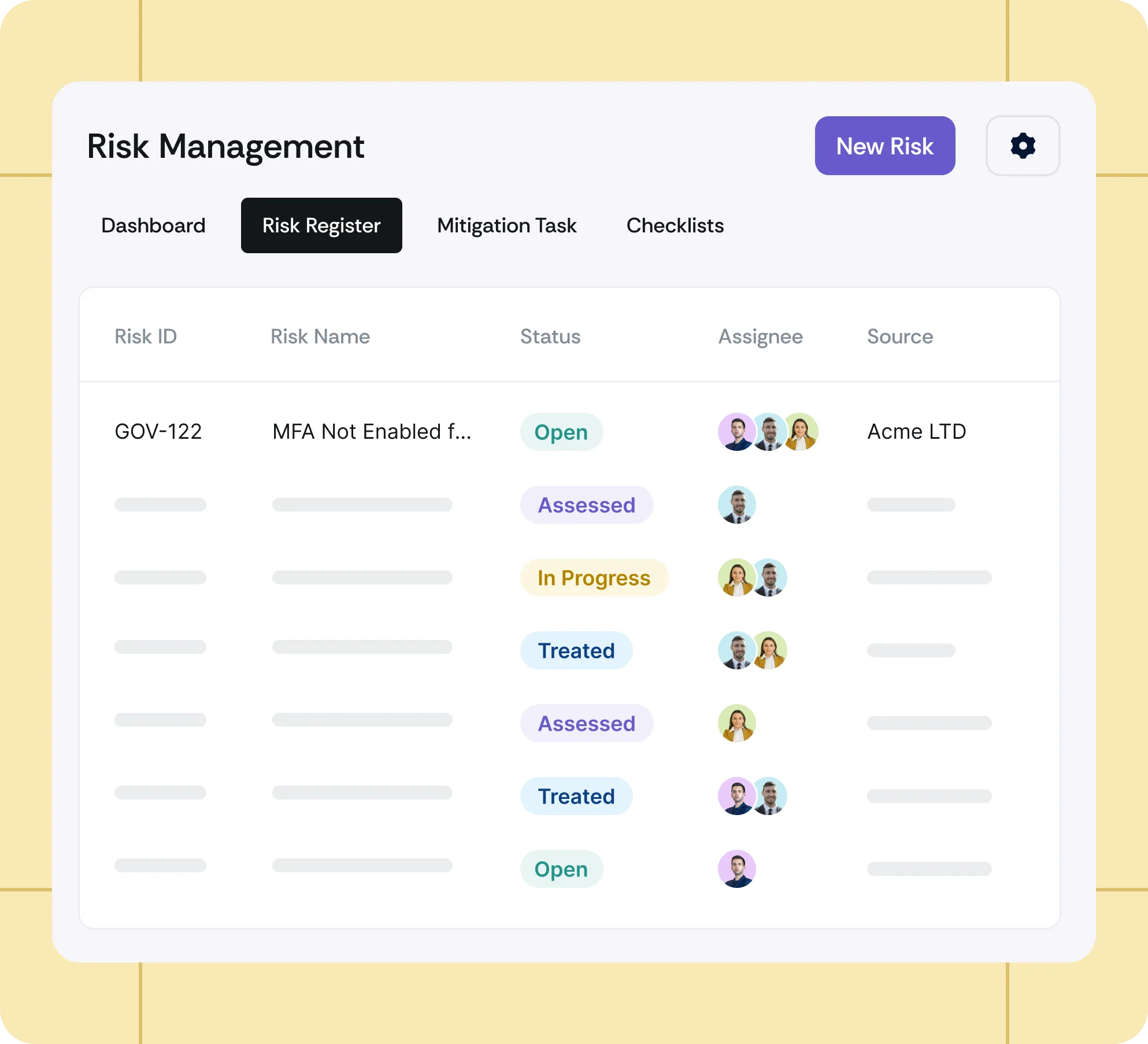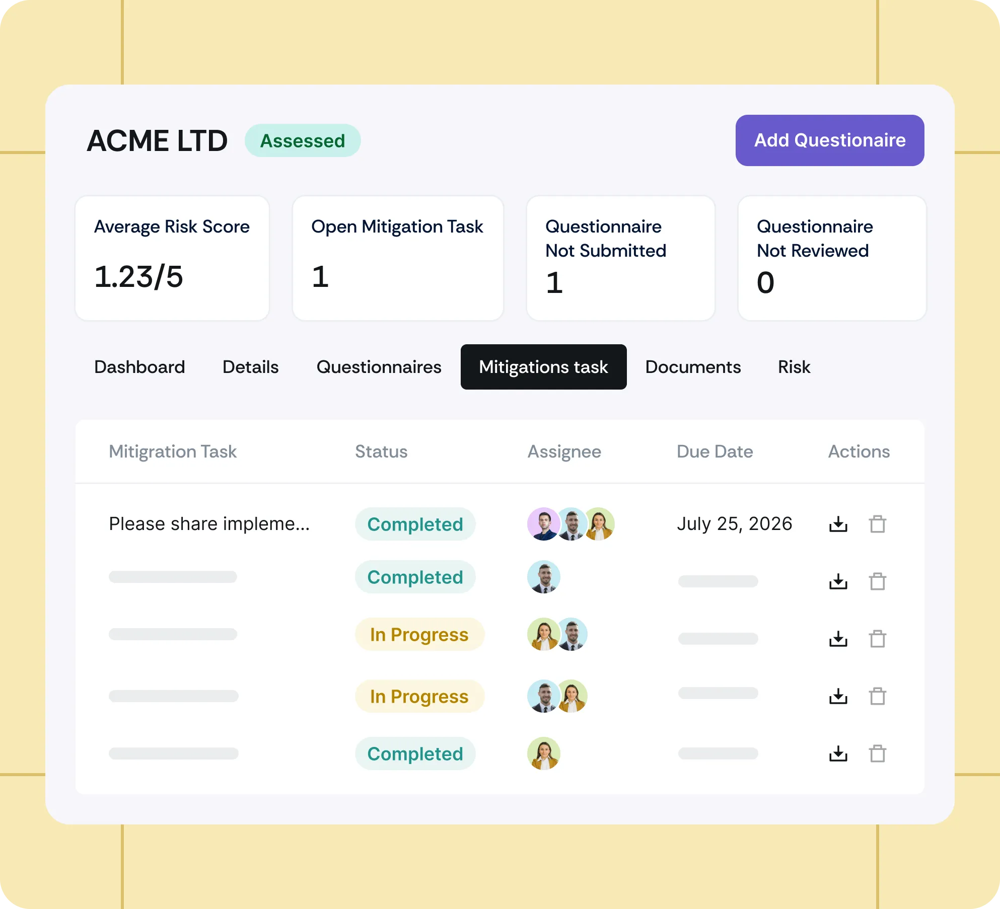 Generate AI-suggested mitigation tasks for identified risks automatically and track their progress to resolution.