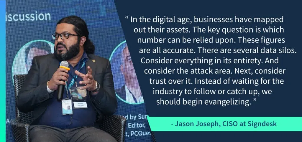 Jason Joseph, CISO at Signdesk, followed Satish’s statement by saying that asset management is essential in the given security scenario. The complexity of each block brought on by shifting data governance and geographic concerns is forcing CISOs to step back and take a fresh look at asset management.