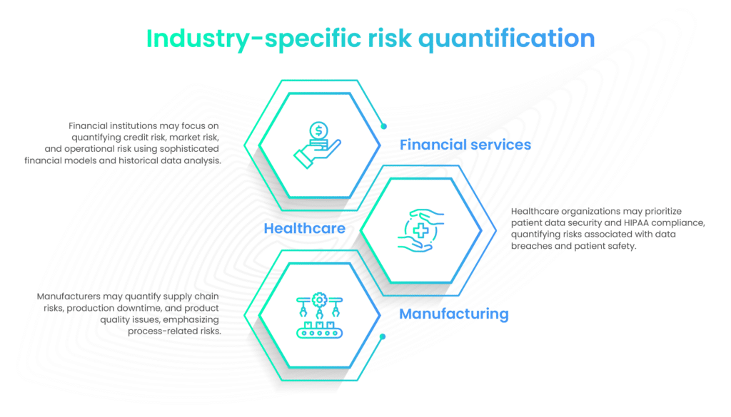 Apart from industry-specific risk quantification, there is also size-based risk quantification, threat-based risk quantification, and business-objective driven risk quantification to name a few.