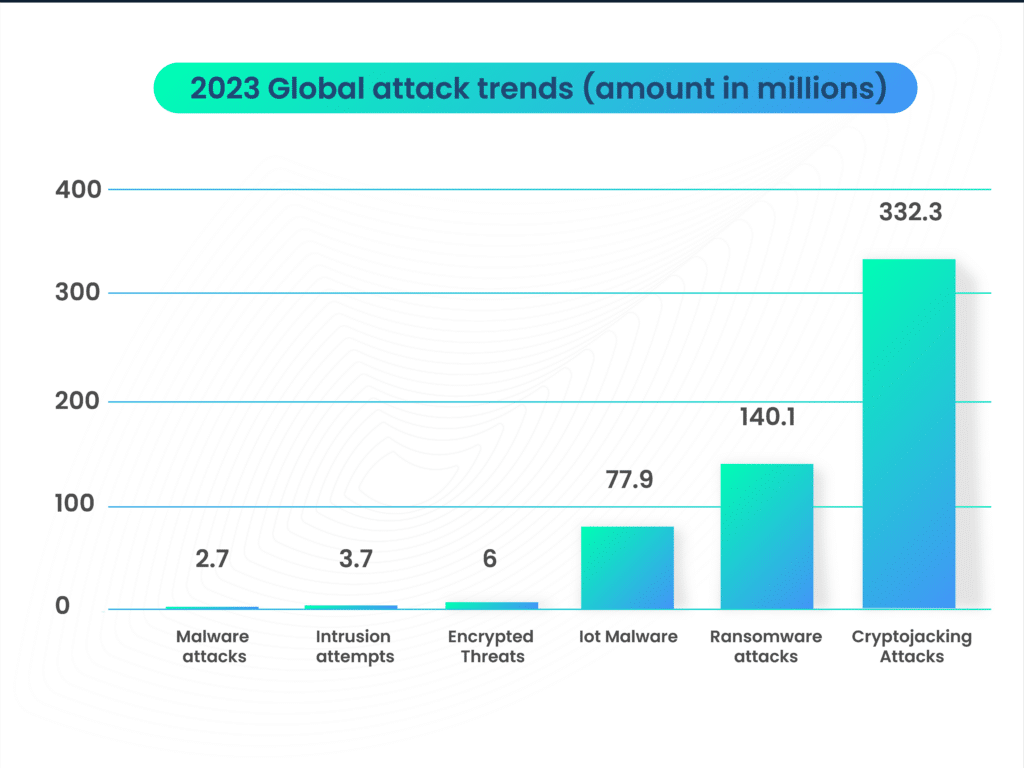 Did you know that Sonicwall reported there was a whopping 399% increase in cryptojacking attacks till mid-year 2023? Let’s look at trends of other types of attacks to understand the need for risk quantification in the organization.