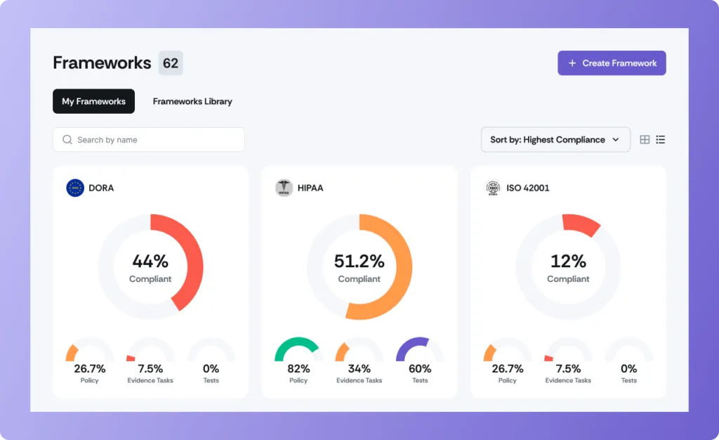 - Centralized platform: Manage DORA and other frameworks in one place.