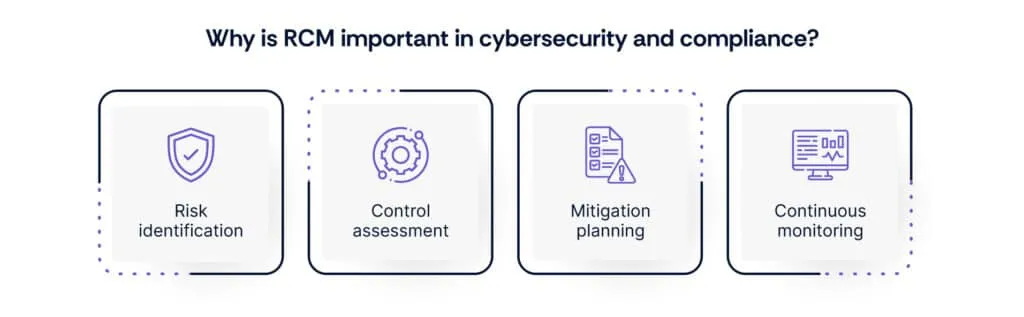 - Risk identification: RCM helps identify cybersecurity risks such as data breaches, unauthorized access, and system vulnerabilities, ensuring proactive measures are taken to address them.