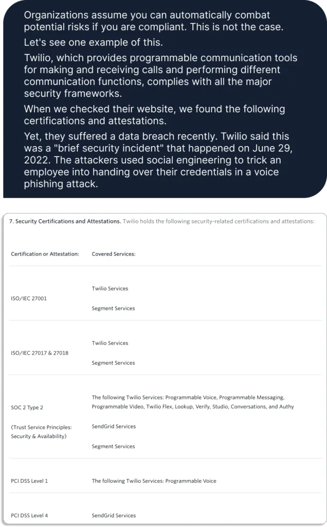 With the compliance-first approach, organizations frequently experience a false sense of security after meeting the regulatory requirements of an industry standard.