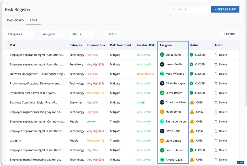 You can create your custom risk categories with the Scrut platform. While creating, you can also assign an owner.