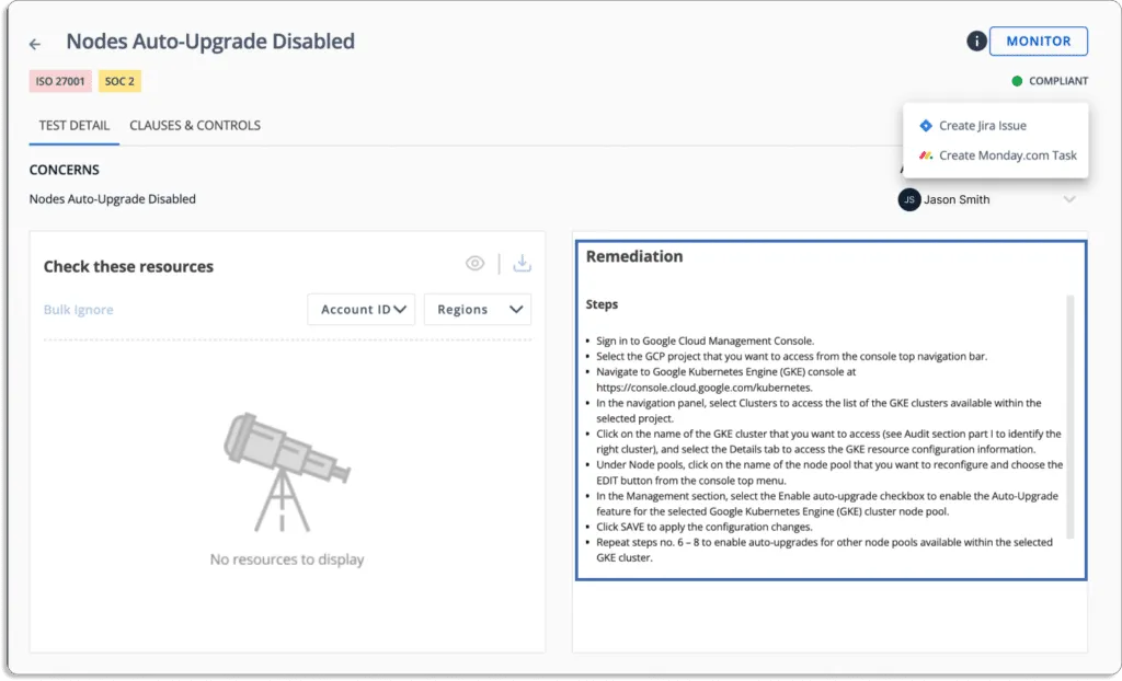 You can also assign tasks to team members to fix misconfigurations, as shown in the screenshot below.