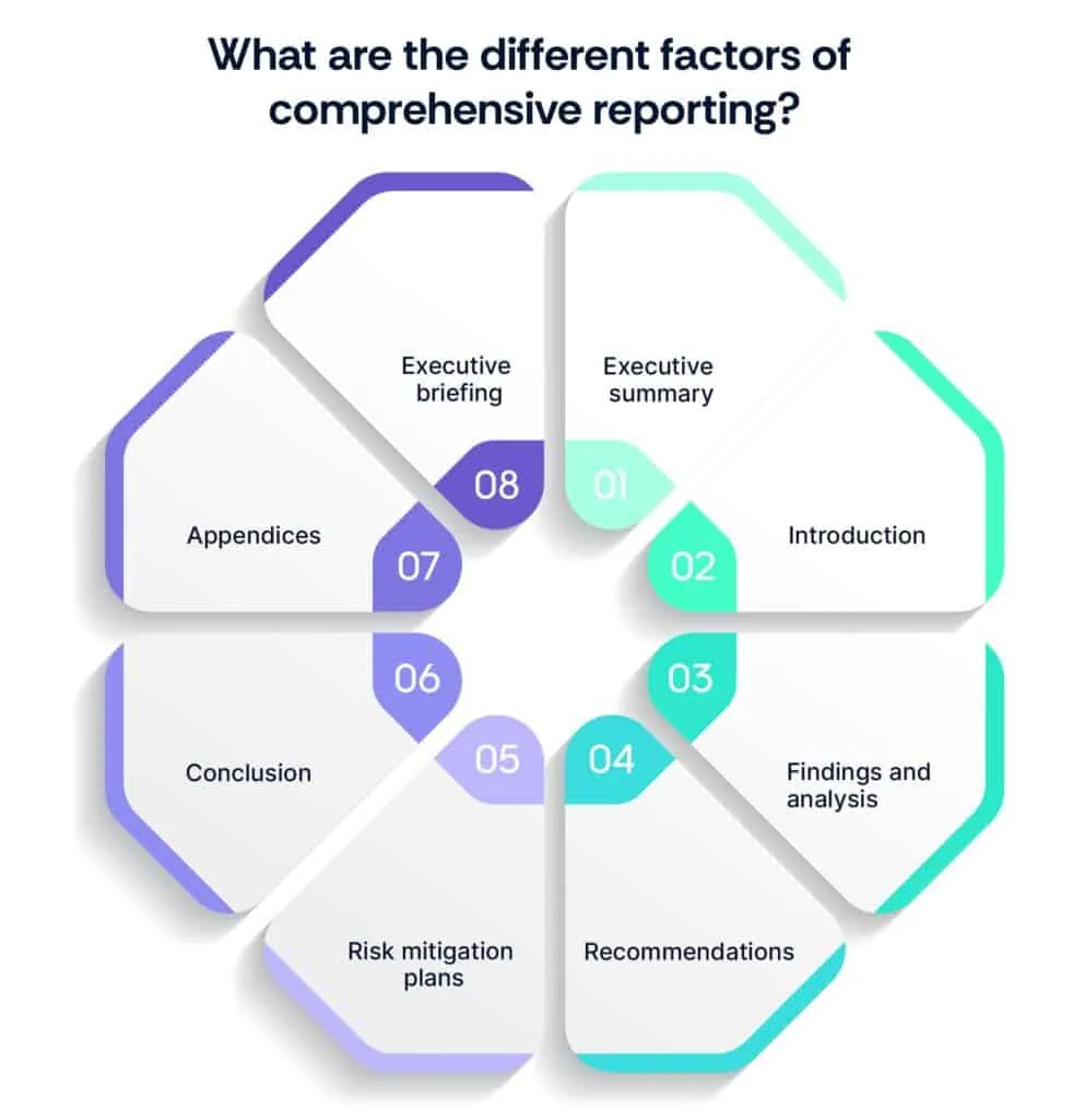 Creating comprehensive reports to document findings, recommendations, and risk mitigation plans is essential for effectively communicating with stakeholders. Here’s how to structure such reports: