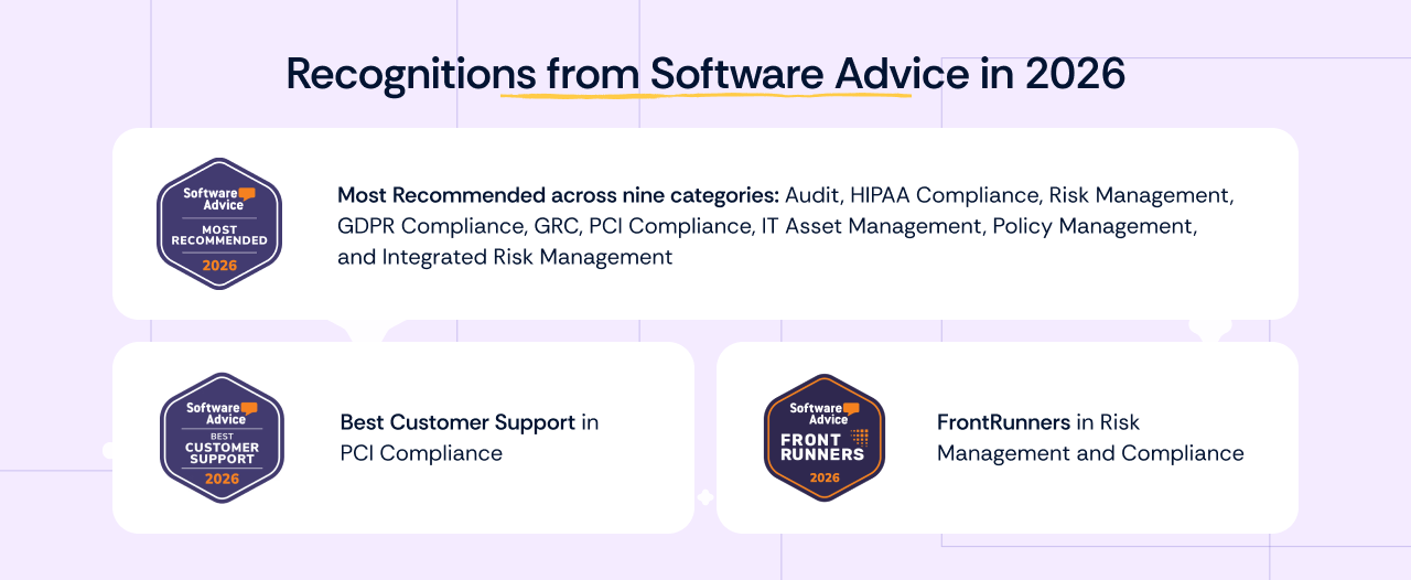 Being recognized in the 2026 Software Advice reports is especially meaningful because it reflects real customer experiences and feedback. Distinctions like these motivate us to keep pushing the boundaries of what our platform can do and confirm that we’re on the right track in helping organizations simplify risk and compliance at scale.