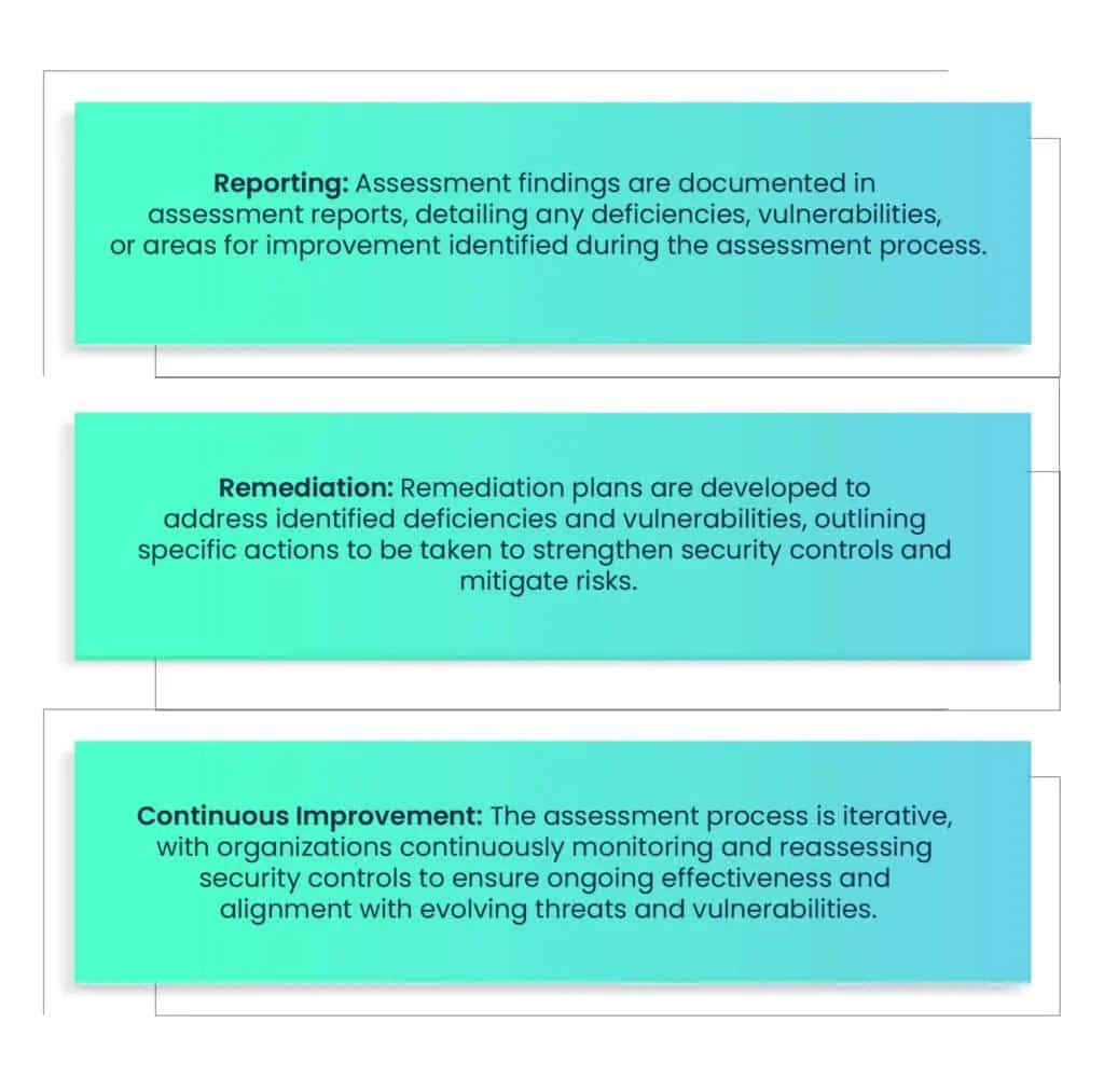 Assessment procedures involve conducting thorough evaluations to determine whether security controls are correctly implemented. They also determine if they are operating as intended, and meeting security requirements. Assessments cover all security controls implemented within the organization’s information system, including management, operational, and technical safeguards.