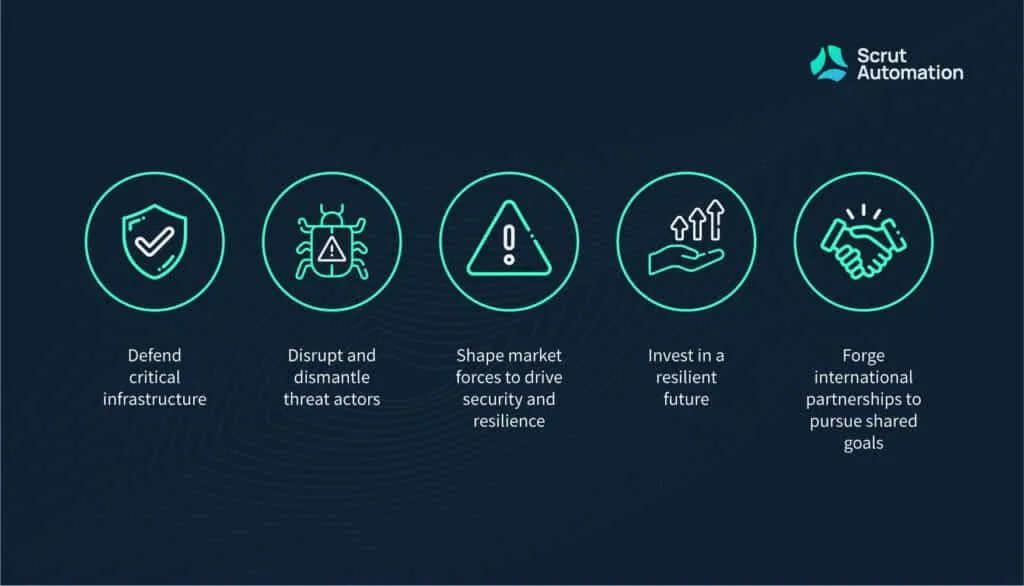 It is based on five fundamental principles or pillars, which aim to direct two fundamental changes, which include rebalancing the responsibility to defend cyberspace and realigning incentives to favor long-term investments. These pillars are as follows;