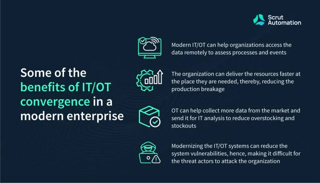 Some of the benefits of IT/OT convergence in a modern enterprise are as follows: