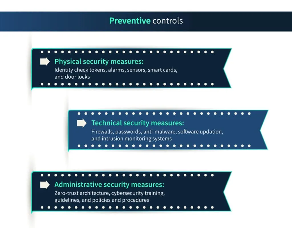 Preventive security controls are the actions taken by an organization to prevent unfavorable events from happening. It is designed to keep out incorrect information, undesirable code, or unauthorized person from the organization’s systems.