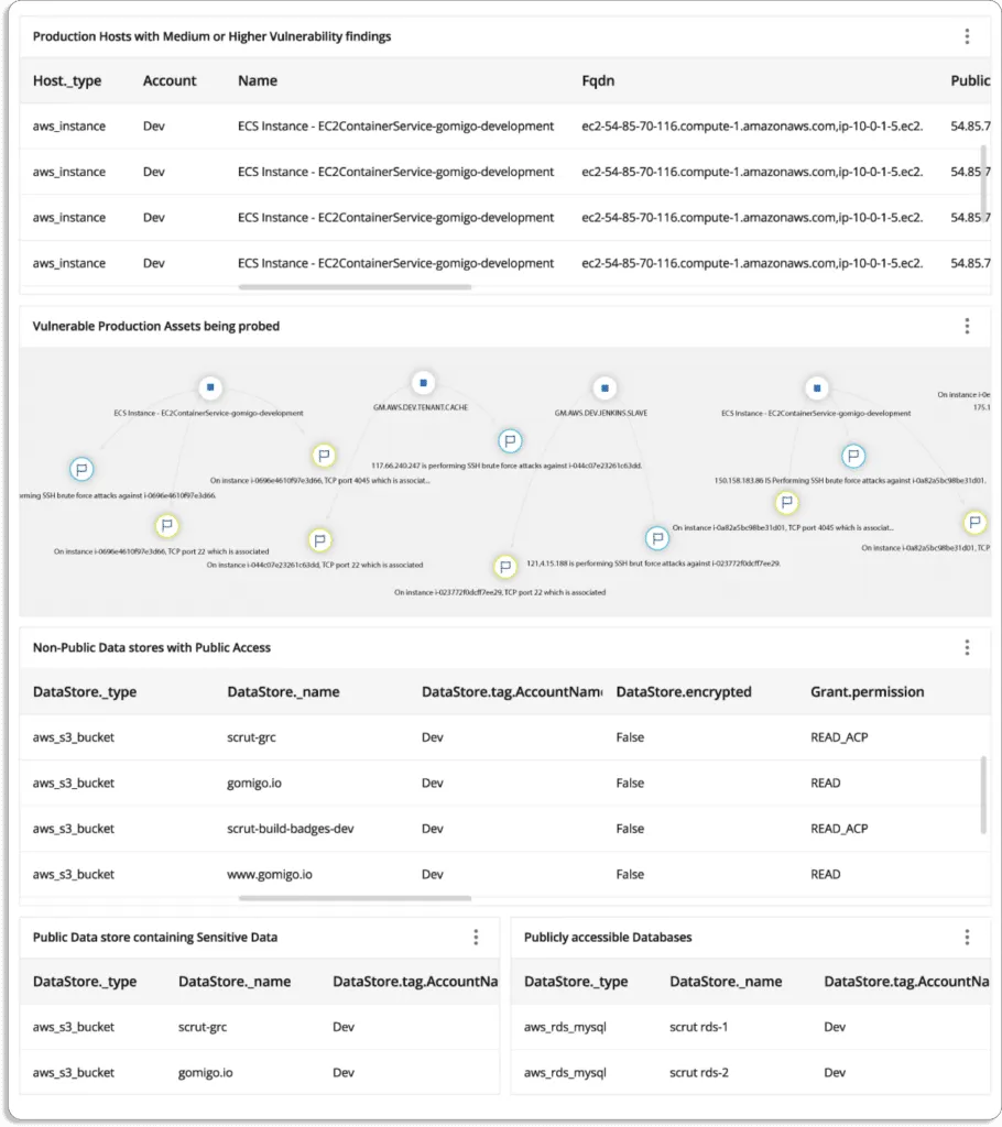 - The tool continuously prioritizes critical risks based on a deep cloud analysis of misconfigurations, secrets, vulnerabilities, malware, sensitive data, and identities to create a single prioritized risk view for your cloud.