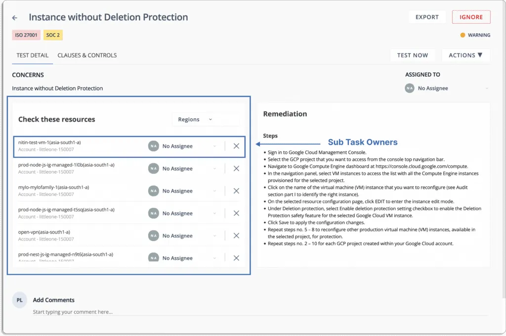 You can also assign tasks to team members to fix misconfigurations, as shown in the screenshot below: