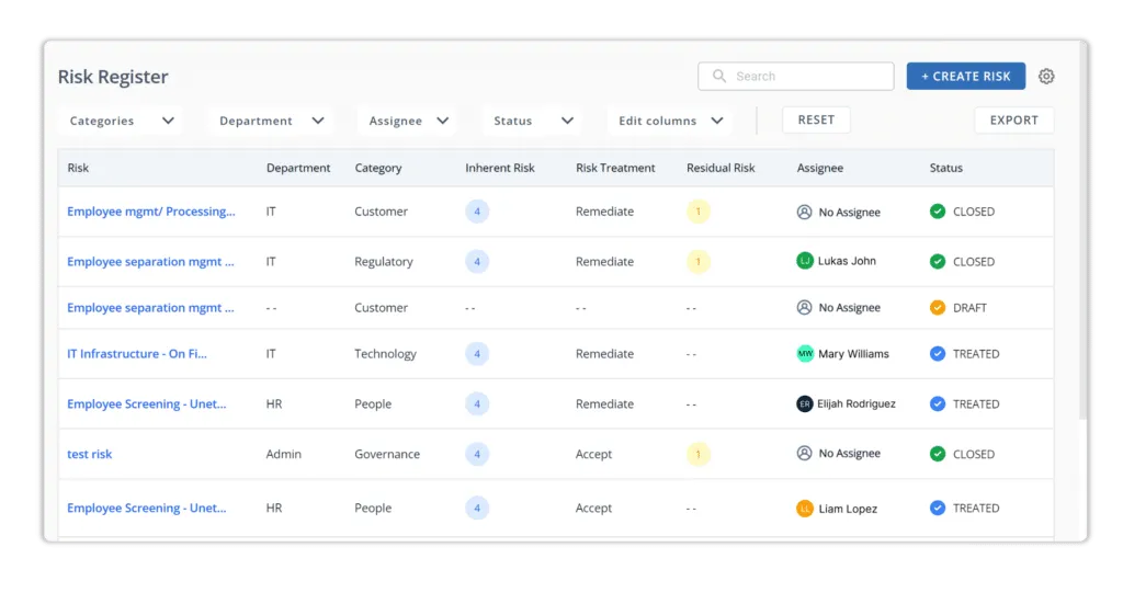 With Scrut, risk can be treated in four ways: remediation, mitigation, transference, and acceptance.