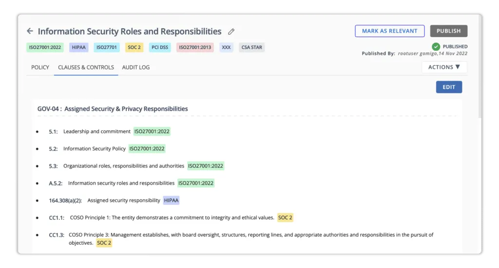 Scrut smartGRC includes pre-built policies that are aligned with popular security and privacy frameworks. Users can start constructing their compliance program in minutes with a library of 50+ policies established and vetted by in-house infosec specialists.